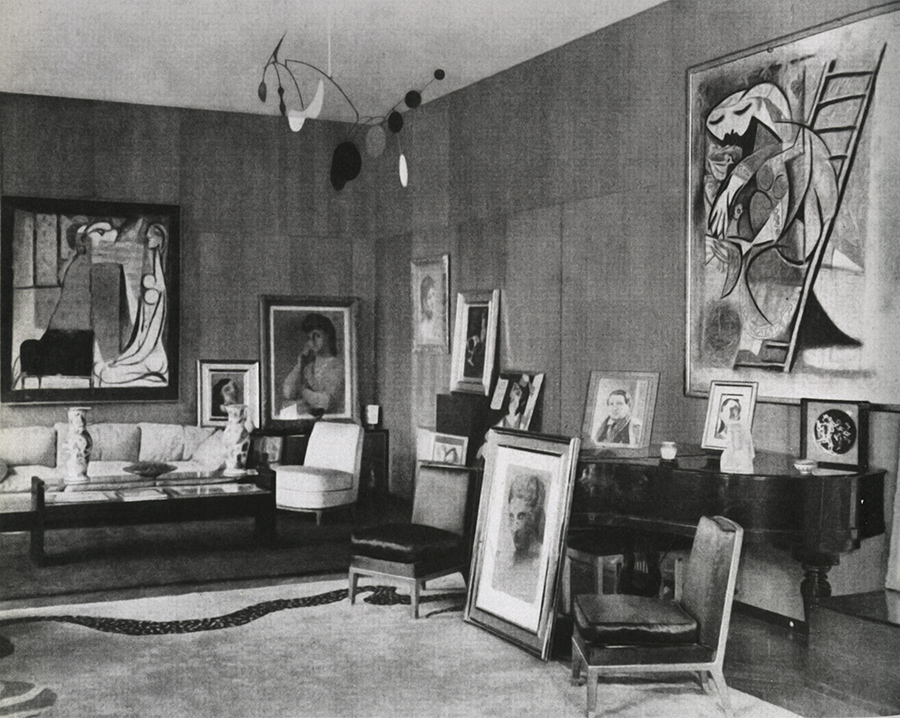 Elle emménage rue de Babylone en 1935, dans un appartement en duplex, très grand, qui lui permet d’accueillir les œuvres du couple. Enclave protégée des bruits de la ville, cossue et accueillante, leur demeure renferme une collection d’une richesse rare et les revues la présentent comme l’un des « hauts lieux de l’art contemporain. » Il y a là des toiles partout : l’œil va de l’une à l’autre, sollicité de toutes parts… Picasso, dont elle apprécie, plus que tout, la diversité des techniques et son trait déroutant, y est à l’honneur, dans le salon, d’abord, où La Grande Parade fait face au Nu sur fond rouge de Léger. Une autre pièce lui est entièrement dédiée. Cette même année, elle s’allie avec Jeanne Bucher, dont le talent pour découvrir de jeunes artistes lui confère une réputation sans égale. Fidèle et dévouée, elle défend les artistes dont elle aime le travail, instaurant avec eux un réel climat de confiance réciproque. Les deux femmes trouvent une jolie maison entre Duroc et Montparnasse, qu’elles vont partager avec Georges Hugnet, collagiste, poète, critique, historien du Surréalisme et du Dadaïsme, qui est également éditeur et occupe le premier étage. Il est par ailleurs le fondateur et directeur de la revue littéraire L’Usage de la parole, publiée par Cahiers d’art de décembre 1939 à avril 1940.